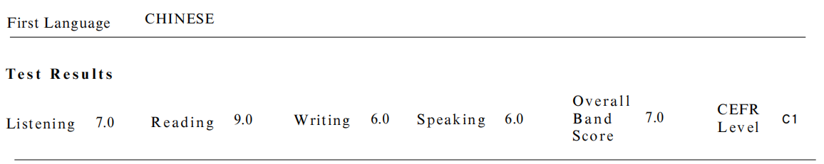 △雅思成绩单