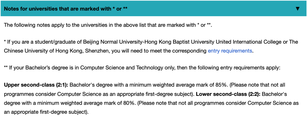 标 “*” 院校:例如香港浸会大学联合国际学院、香港中文大学(深圳)等,申请时需满足伦敦大学学院针对中国香港地区院校设定的入学要求,而非内地院校标准。