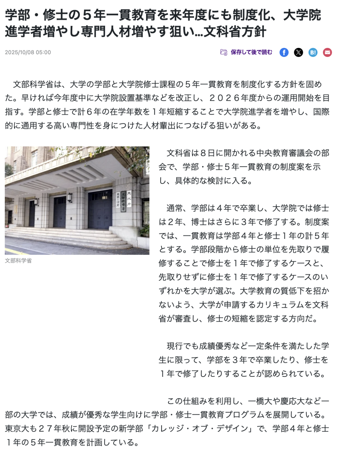 日本即将推出“五年一贯制本硕连读制度”,最快2026年全面落地!