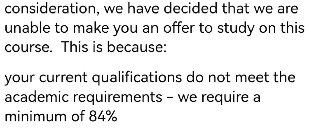 利兹的拒信五花八门,布里斯托理由巨多,谢菲非常注意细节。但这3所院校都是会把拒信给你写的清清楚楚明明白白的那种。比如你本科院校排名不够,专业背景不符,个人陈述不符合要求等等。