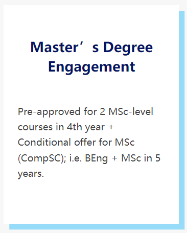 本科第四学年已获准预修两门硕士阶段课程+计算机科学硕士项目的有条件录取;第5年可接衔接港大计算机科学硕士。