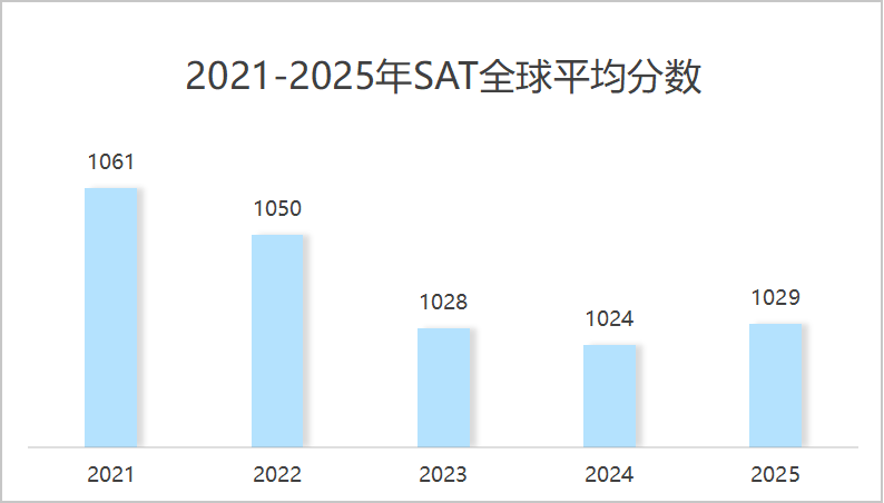 2025年全球SAT平均分是1029分,其中阅读和文法全球均分521分,数学全球均分508分。