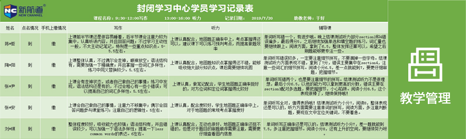 新航道将成熟且完善教学体系移植到封闭班,在确保老师“教得好”的同时保证学生“学得好”,强化学生的行为管理、时间管理、生活管理。